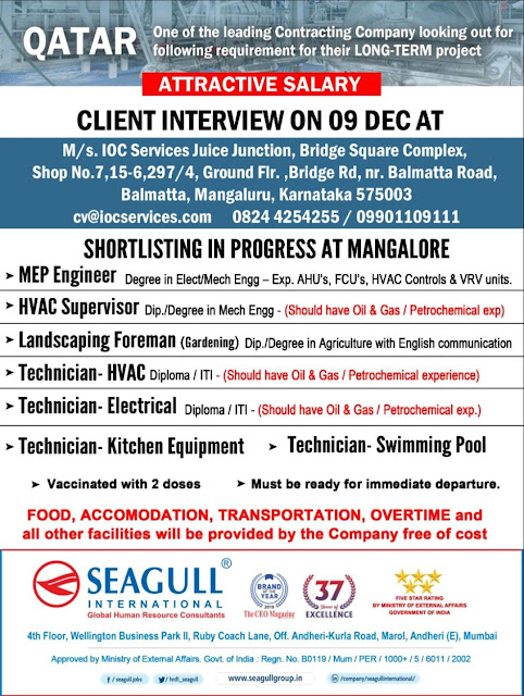 04 Dec 2022 - Seagull Manpower Overseas Gulf Job Vacancies Today