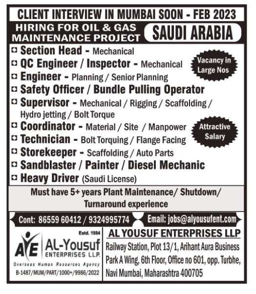 "This is to inform all concerned Consultancies, Newspapers Agencies and Recruiters that ““https://assignmentabroadtimesgulfjobs.blogspot.com”” is a free Jobs posting platform for the job-seekers to find best suitable Jobs from Various Opportunity. “https://assignmentabroadtimesgulfjobs.blogspot.com” also does not guarantee any interview/meeting/discussion with any employer basis any amount of initial monetary payment by the job seekers. “https://assignmentabroadtimesgulfjobs.blogspot.com” is not responsible for, and expressly disclaims all liability for, any such communication via email, sms or phone call by a frivolous or suspicious source claiming to have got the contact details of the person concerned through or representing “https://assignmentabroadtimesgulfjobs.blogspot.com/”. Job seekers are advised not to indulge in any monetary engagement with such sources in the name of guaranteed interviews with employers."