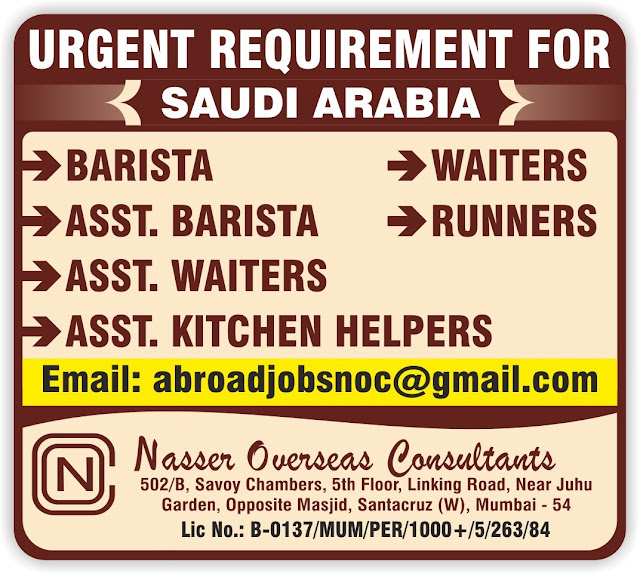 All Gulf Jobs Vacancy Newspaper Ads For Overseas Includes Saudi Arabia, Oman, Qatar, Kuwait, Bahrain, Europe, Russia, Africa Walk-in Interviews, CV's Selection, And Walk-ins Interviews Through Indian Manpower Recruitment Agencies Or Consultants For This Week.