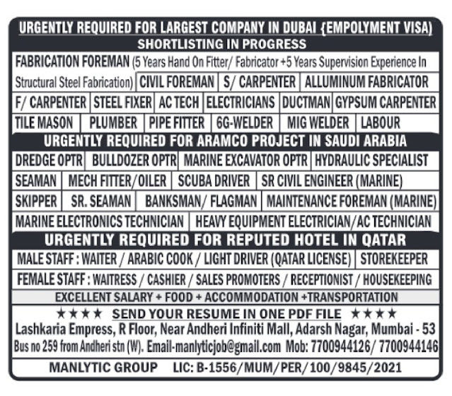 For This Week, All Gulf Job Openings Will Be Advertised In The Weekly Newspaper "Assignment Abroad Times" Via Manpower Recruitment Agencies Or Consultants.