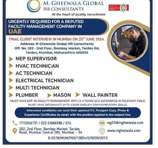 Gulf & Europe Countries Jobs Interviews Posted In The Assignment Abroad Times Gulf Europe Jobs Vacancies Openings paper, Wednesday, 19 June, 2024.