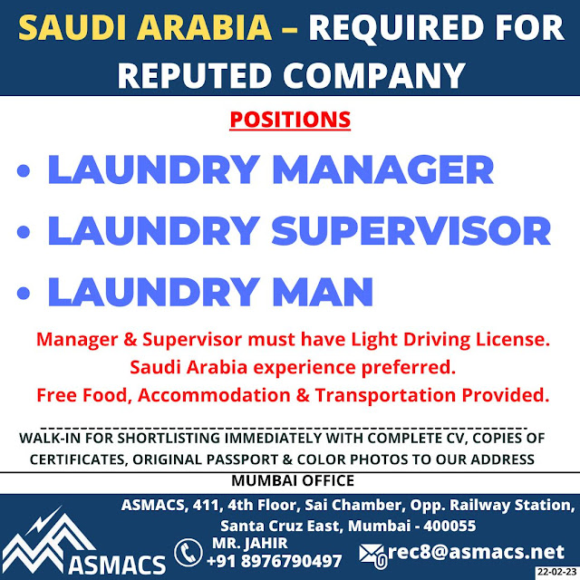Gulf Jobs Vacancy This Week Posted By One Of The Famous And Oldest Consultancy "ASMACS Group" For The Upcoming Interview Between 05 September 2023 To 10 September 2023.